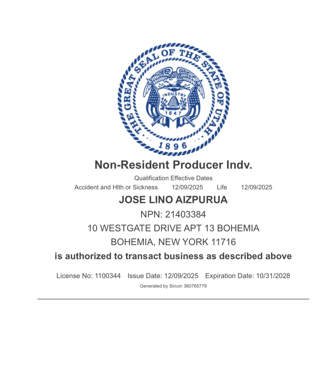 National Producer Number (NPN): 21403384